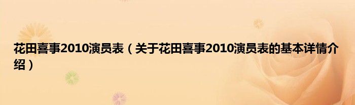 本文关于花田喜事2010演员表的基本详情介绍就讲解完毕,希望对大家有所帮助。