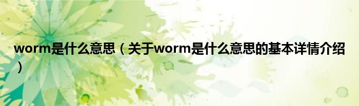 本文关于worm是什么意思的基本详情介绍就讲解完毕,希望对大家有所帮助。