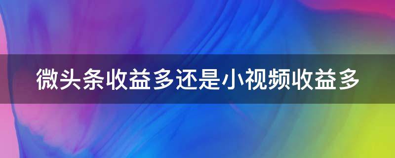 视情况而定。若是论单阅读,视频的收益比微阅读多。但视频的竞争激烈,很难推送,也不容易出爆款,很难得到更多收益。微头条投入较小,每天的推送量也大,比较容易得到阅读量和收益。微头条是一款基于数据技术聚合社交媒体热点内容的轻资讯阅读平台。使用者可以通过微头条找到自己喜欢的内容:如搞笑段子、心灵鸡汤、健康养生、萌宠美食、八卦娱乐等。在收获开心、感动等情感要素的同时,通过一键分享将这些内容传播到微信、QQ空间、微博等各大社交平台,以此来彰显独特个性及价值观念,并以分享自己所爱,来影响到更为广泛的网络人群。