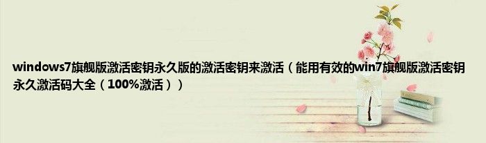 大家好,综合小编来为大家讲解下windows7旗舰版激活密钥永久版的激活密钥来激活,能用有效的win7旗舰版激活密钥永久激活码大全,100%激活这个很多人还不知道,现在让我们一起来看看吧!