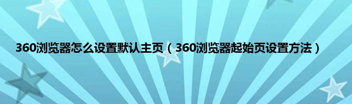 大家好,综合小编来为大家讲解下360浏览器怎么设置默认主页,360浏览器起始页设置方法这个很多人还不知道,现在让我们一起来看看吧!