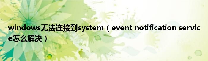 大家好,综合小编来为大家讲解下windows无法连接到system,event notification service怎么解决这个很多人还不知道,现在让我们一起来看看吧!