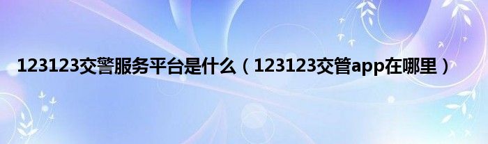 大家好,综合小编来为大家讲解下。123123交警服务平台是什么,123123交管app在哪里这个很多人还不知道,现在让我们一起来看看吧!