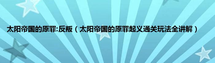 大家好,综合小编来为大家讲解下太阳帝国的原罪:反叛,太阳帝国的原罪起义通关玩法全讲解这个很多人还不知道,现在让我们一起来看看吧!