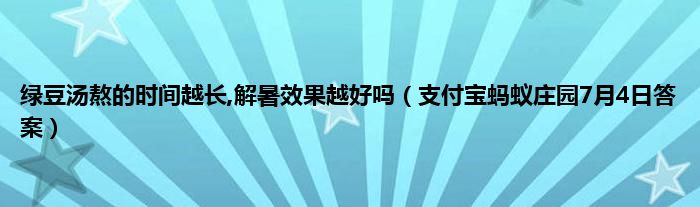 大家好,综合小编来为大家讲解下绿豆汤熬的时间越长,解暑效果越好吗,支付宝蚂蚁庄园7月4日答案这个很多人还不知道,现在让我们一起来看看吧!