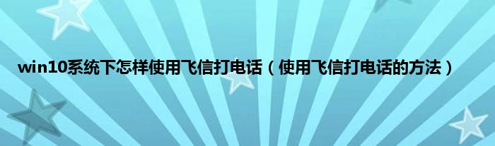 大家好,综合小编来为大家讲解下win10系统下怎样使用飞信打电话,使用飞信打电话的方法这个很多人还不知道,现在让我们一起来看看吧!
