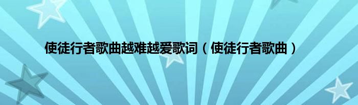 大家好,小问来为大家解答以上问题。使徒行者歌曲越难越爱歌词,使徒行者歌曲这个很多人还不知道,现在让我们一起来看看吧!