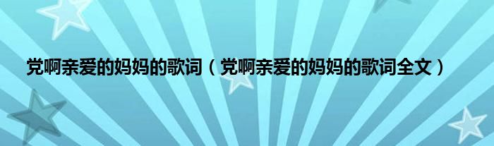 欢迎观看本篇文章,小升来为大家解答以上问题。党啊亲爱的妈妈的歌词,党啊亲爱的妈妈的歌词全文很多人还不知道,现在让我们一起来看看吧!