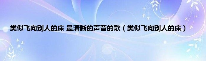 大家好,小问来为大家解答以上问题。类似飞向别人的床 最清晰的声音的歌,类似飞向别人的床这个很多人还不知道,现在让我们一起来看看吧!