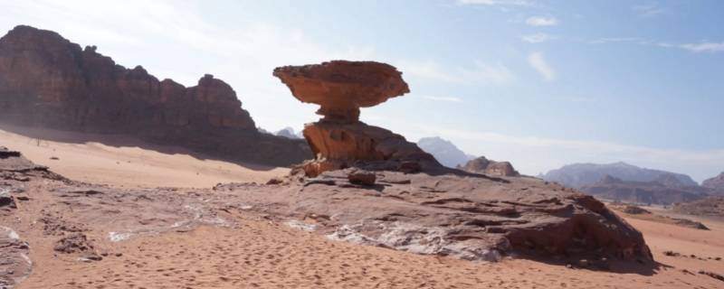 观赏风蚀蘑菇的最佳角度是离风蚀蘑菇50-300米,并且高1-2米的地方。风蚀蘑菇通常指蕈岩,在风沙强劲的地方,如果露出地表的岩石水平节理、层理很发达,易被风蚀成奇特的外形。特别是一块孤立突起的岩石如果下部岩性较软,经长期侵蚀,可能会形成顶部大于下部的蘑菇外形,称为蕈岩。蕈岩在我国吐鲁番盆地西北部、准噶尔盆地西北部的乌尔禾等地都有分布,但以塔克拉玛干沙漠麻扎塔格地区最为典型。大致可分为蕈岩、烛岩、姜岩及豆腐岩等类型。