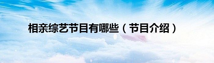 欢迎观看本篇文章,小升来为大家解答以上问题。相亲综艺节目有哪些,节目介绍很多人还不知道,现在让我们一起来看看吧!