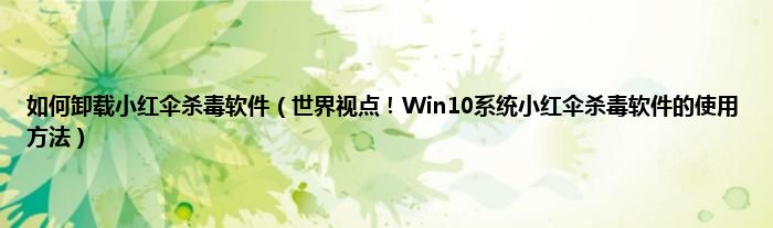 大家好,综合小编来为大家讲解下如何卸载小红伞杀毒软件,世界视点!Win10系统小红伞杀毒软件的使用方法这个很多人还不知道,现在让我们一起来看看吧!