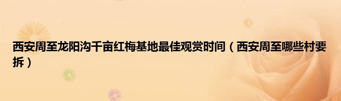 以上就是【西安周至龙阳沟千亩红梅基地最佳观赏时间,西安周至哪些村要拆】相关内容。