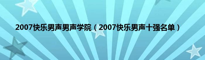 大家好,小问来为大家解答以上问题。2007快乐男声男声学院,2007快乐男声十强名单这个很多人还不知道,现在让我们一起来看看吧!
