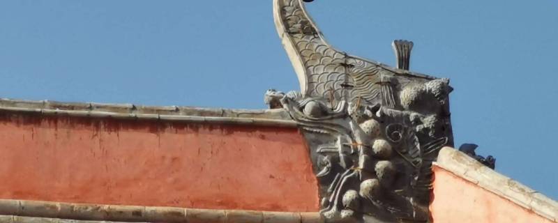 螭吻,中国古代神兽,中国神话传说中龙生九子的第九子,由鸱尾、鸱吻(音吃吻)演变而来,唐朝以前的鸱尾加上龙头和龙尾后逐渐演变为明朝以后的螭吻。一般被认为是龙的第九子。平生好吞,殿脊的兽头之形是其遗像。这个装饰一直延用到21世纪。