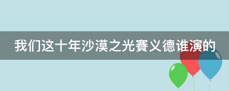 最佳答案我们这十年沙漠之光賽义德是巴萨演的。《我们这十年》是由毛卫宁、侯京龙、王逸伟、刘海波、杨阳、库尔班江吐尔达洪、刘雪松、安建、李东霖、李昂、杨磊、滕华涛执导,白百何、白宇帆、董勇、郭晓东、侯勇、黄志忠、林一、谭松韵、王凯、王雷、闫妮、杨子姗等领衔主演的献礼二十大现实题材电视剧。...