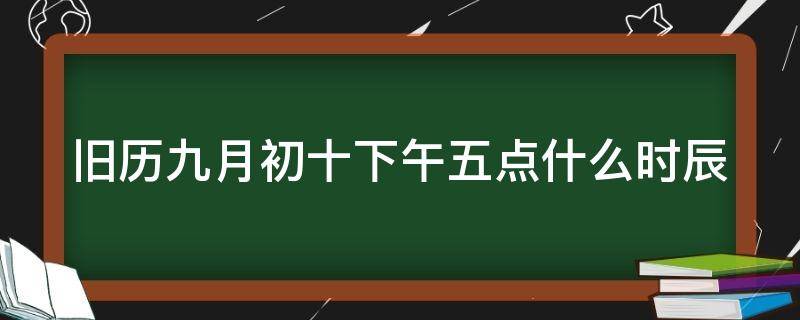 旧历九月初十下午五点是酉时。酉时,十二时辰之一,具体时间是下午5时正至下午7时正。古代劳动人民把一昼夜划分成十二个时段,每一个时段叫一个时辰。十二时辰可以指一天,也可以指任何一个时辰。十二时辰是古代中国劳动人民根据一日间太阳出没的自然规律、天色的变化以及自己日常的生产活动、生活习惯而归纳总结、独创于世的。十二时辰制西周时就已使用。十二时由十二个特定的时间名词构成,人们可以从先秦时代的中国古籍中溯寻出这些词语的渊源。