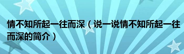 情不知所起一往而深(说一说情不知所起一往而深的简介)