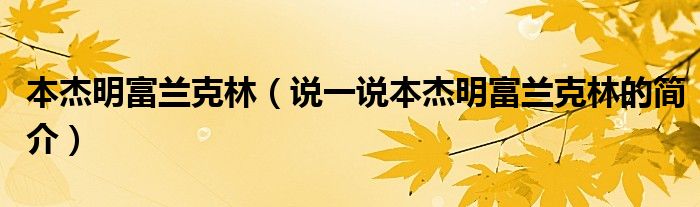 夏弥来为大家解答以下的问题,本杰明富兰克林,说一说本杰明富兰克林的简介,现在让我们一起来看看吧!
