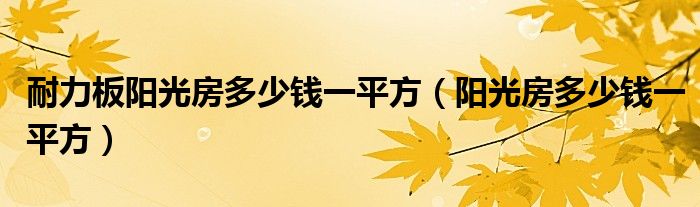 关于耐力板阳光房多少钱一平方,阳光房多少钱一平方这个很多人还不知道,今天菲菲来为大家解答以上的问题,现在让我们一起来看看吧!