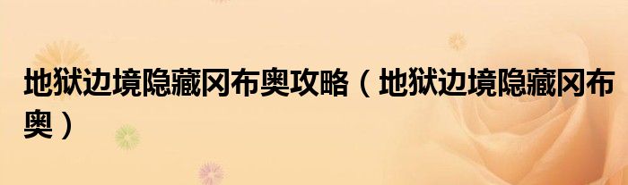 关于地狱边境隐藏冈布奥攻略,地狱边境隐藏冈布奥这个很多人还不知道,今天菲菲来为大家解答以上的问题,现在让我们一起来看看吧!