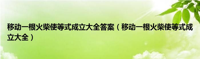 关于移动一根火柴使等式成立大全答案,移动一根火柴使等式成立大全这个很多人还不知道,今天菲菲来为大家解答以上的问题,现在让我们一起来看看吧!