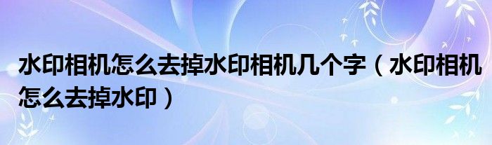 关于水印相机怎么去掉水印相机几个字,水印相机怎么去掉水印这个很多人还不知道,今天菲菲来为大家解答以上的问题,现在让我们一起来看看吧!