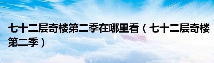 关于七十二层奇楼第二季在哪里看,七十二层奇楼第二季这个很多人还不知道,今天菲菲来为大家解答以上的问题,现在让我们一起来看看吧!