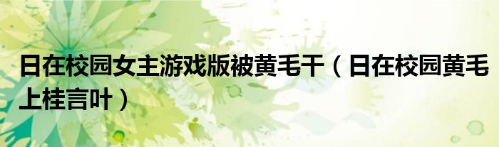 关于日在校园女主游戏版被黄毛干,日在校园黄毛上桂言叶这个很多人还不知道,今天菲菲来为大家解答以上的问题,现在让我们一起来看看吧!
