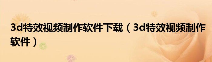 关于3d特效视频制作软件下载,3d特效视频制作软件这个很多人还不知道,今天菲菲来为大家解答以上的问题,现在让我们一起来看看吧!