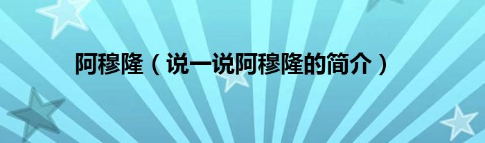 夏弥来为大家解答以下的问题,阿穆隆,说一说阿穆隆的简介,现在让我们一起来看看吧!