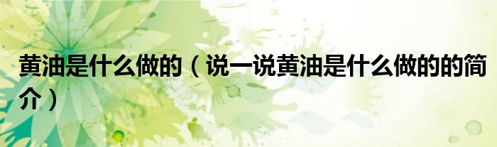 夏弥来为大家解答以下的问题,黄油是什么做的,说一说黄油是什么做的的简介,现在让我们一起来看看吧!
