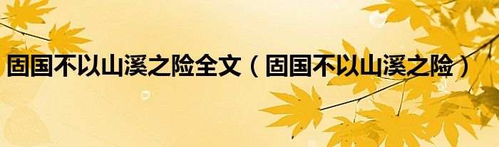 1、固国不以山溪之险上一句: 域民不以封疆之界 得道多助,失道寡助 [作者] 《孟子》 [全文] 天时不如地利,地利不如人和。
