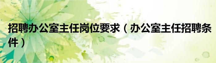 关于招聘办公室主任岗位要求,办公室主任招聘条件这个很多人还不知道,今天菲菲来为大家解答以上的问题,现在让我们一起来看看吧!