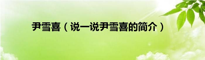 夏弥来为大家解答以下的问题,尹雪喜,说一说尹雪喜的简介,现在让我们一起来看看吧!