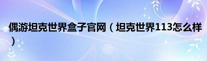 关于偶游坦克世界盒子官网,坦克世界113怎么样这个很多人还不知道,今天菲菲来为大家解答以上的问题,现在让我们一起来看看吧!
