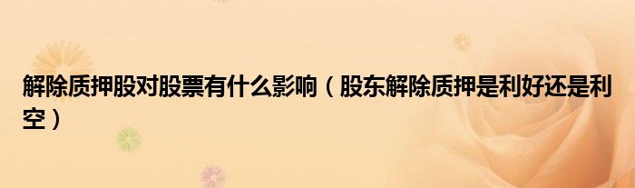 关于解除质押股对股票有什么影响,股东解除质押是利好还是利空这个很多人还不知道,今天菲菲来为大家解答以上的问题,现在让我们一起来看看吧!