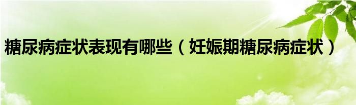 关于糖尿病症状表现有哪些,妊娠期糖尿病症状这个很多人还不知道,今天菲菲来为大家解答以上的问题,现在让我们一起来看看吧!