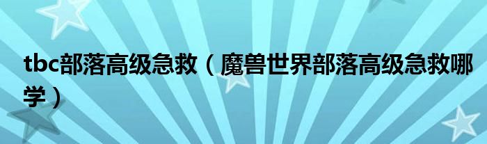 tbc部落高级急救(魔兽世界部落高级急救哪学)