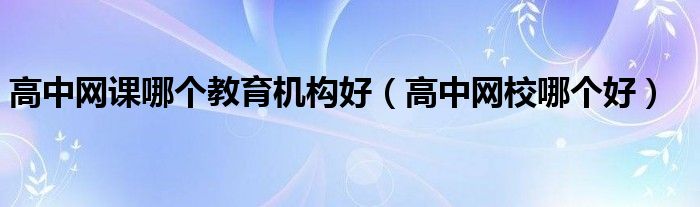 关于高中网课哪个教育机构好,高中网校哪个好这个很多人还不知道,今天菲菲来为大家解答以上的问题,现在让我们一起来看看吧!