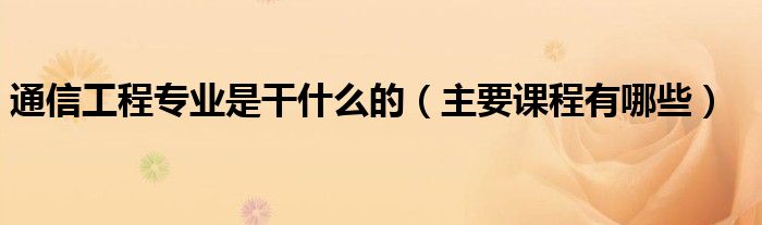 最佳答案大家好,乐儿来为大家解答以下问题,通信工程专业是干什么的,主要课程有哪些很多人还不知道,现在让我们一起来看看吧!一、通信工程专业主要学什么1、通信工程专业主要需要学;电路分析基础、模拟电子技术、通信电子电路、数字电子技术、C++高级语言程序设计、数据结构、微处理器与接口技术、信号与...