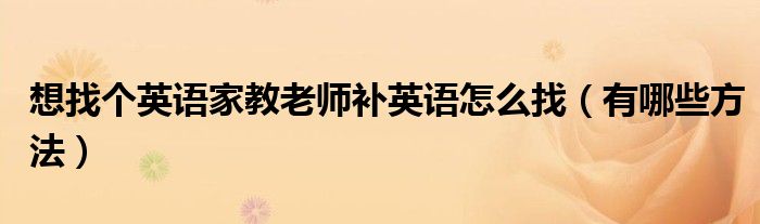 大家好,乐儿来为大家解答以下问题,想找个英语家教老师补英语怎么找,有哪些方法很多人还不知道,现在让我们一起来看看吧!