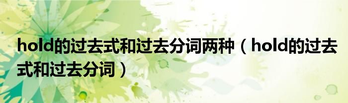 关于hold的过去式和过去分词两种,hold的过去式和过去分词这个很多人还不知道,今天菲菲来为大家解答以上的问题,现在让我们一起来看看吧!