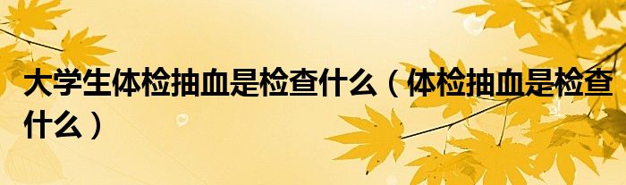 大家好,乐天来为大家解答以下的问题,大学生体检抽血是检查什么,体检抽血是检查什么很多人还不知道,现在让我们一起来看看吧!