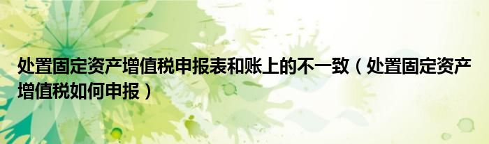 关于处置固定资产增值税申报表和账上的不一致,处置固定资产增值税如何申报这个很多人还不知道,今天菲菲来为大家解答以上的问题,现在让我们一起来看看吧!
