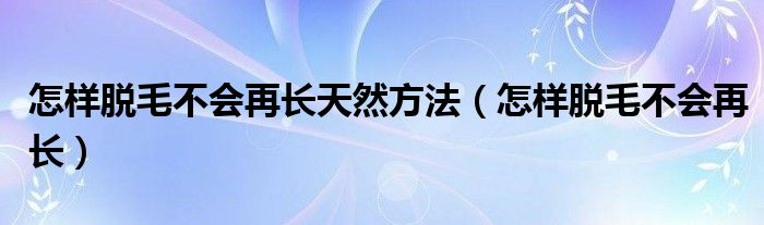 大家好,乐天来为大家解答以下的问题,怎样脱毛不会再长天然方法,怎样脱毛不会再长很多人还不知道,现在让我们一起来看看吧!