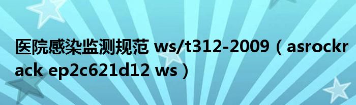 关于医院感染监测规范 ws/t312-2009,asrockrack ep2c621d12 ws这个很多人还不知道,今天菲菲来为大家解答以上的问题,现在让我们一起来看看吧!