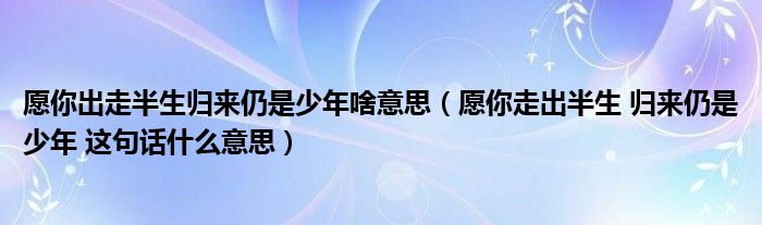 关于愿你出走半生归来仍是少年啥意思,愿你走出半生 归来仍是少年 这句话什么意思这个很多人还不知道,今天菲菲来为大家解答以上的问题,现在让我们一起来看看吧!
