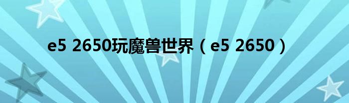 关于e5 2650玩魔兽世界,e5 2650这个很多人还不知道,今天菲菲来为大家解答以上的问题,现在让我们一起来看看吧!