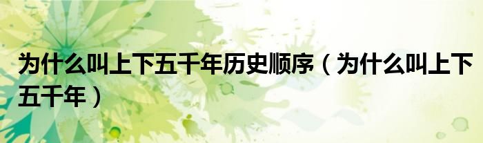大家好,乐儿来为大家解答以下问题,为什么叫上下五千年历史顺序,为什么叫上下五千年很多人还不知道,现在让我们一起来看看吧!